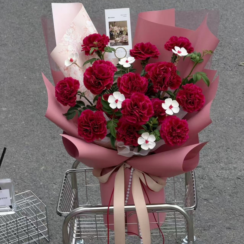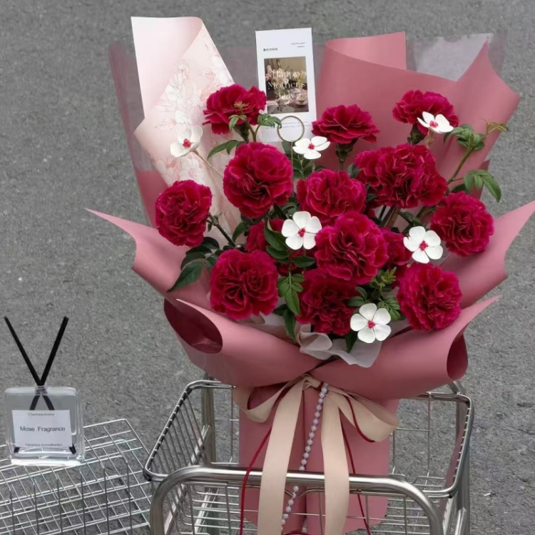 母亲节爆款/复古红康乃馨花束