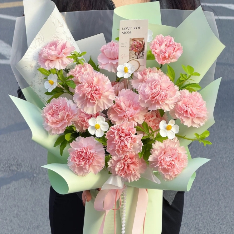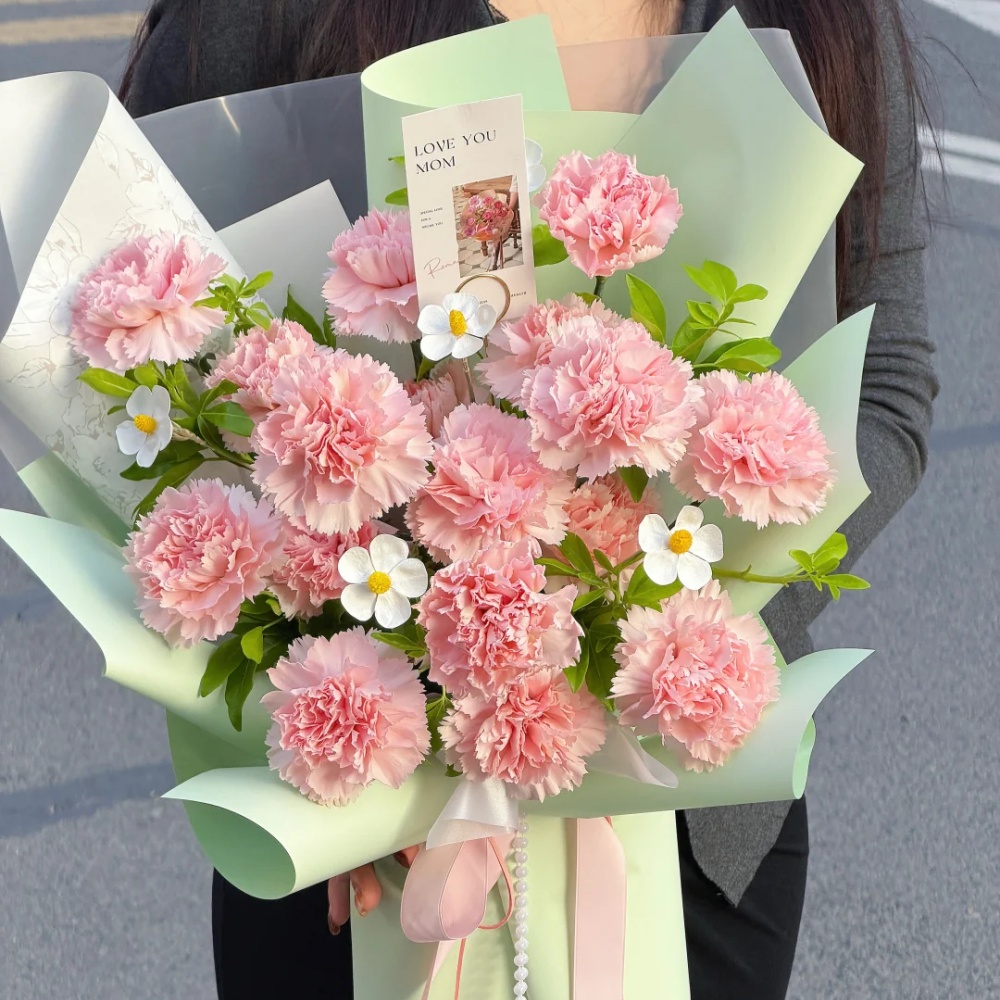 送你一束粉绿,愿你永远吧被温柔与美好包围
