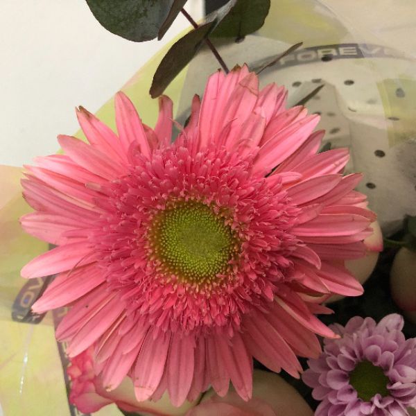 拉丝扶郎没有,换成小雏菊,感觉档次下降不少,尤加利叶蔫了,荔枝玫瑰全部怒放,有点儿过了,还是喜欢含苞待放,亲眼目睹其开放的过程